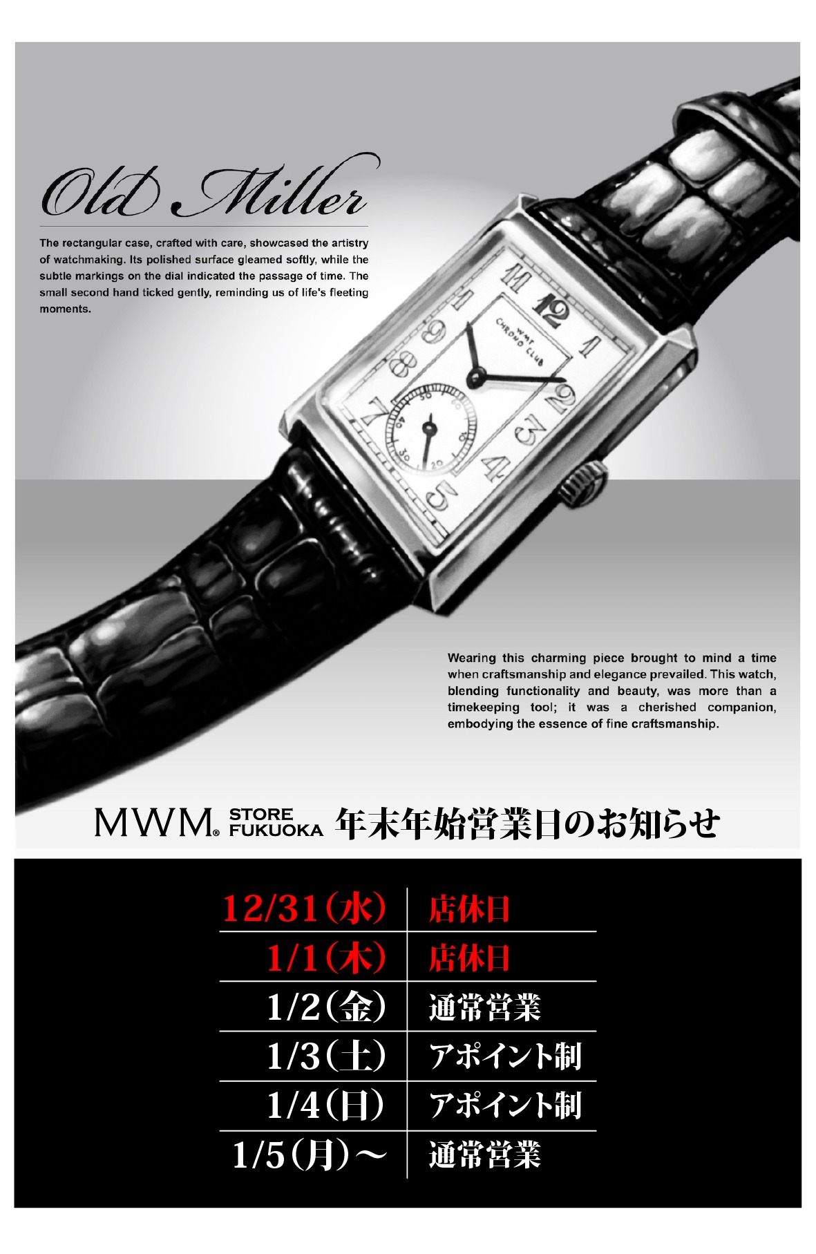 【年末年始休業期間】12月31日(水)〜1月1日(木)