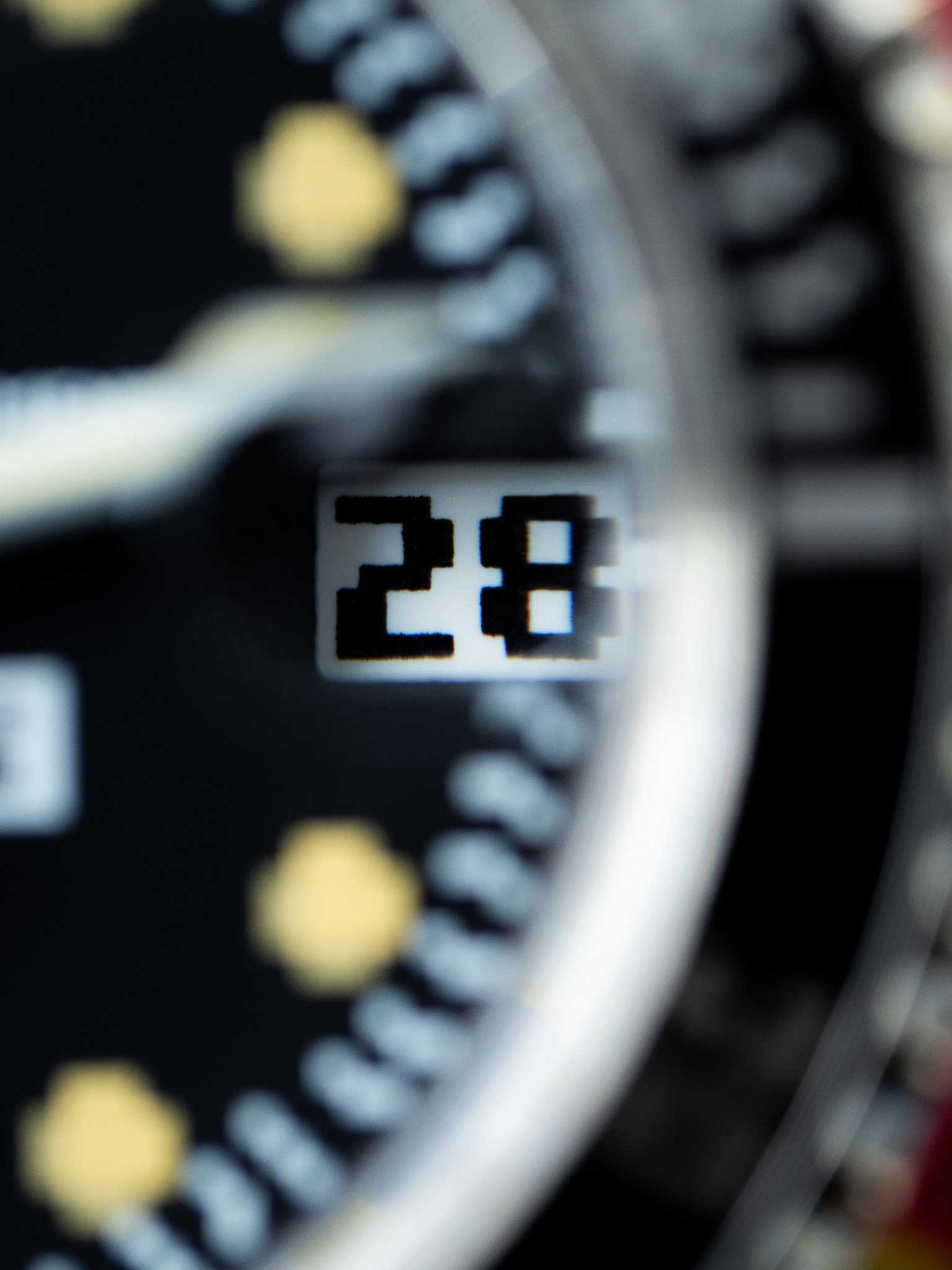 ベゼルの刻印やインデックス、針に至るまで、すべてが8ビット調のブロックデザインで構成されています。