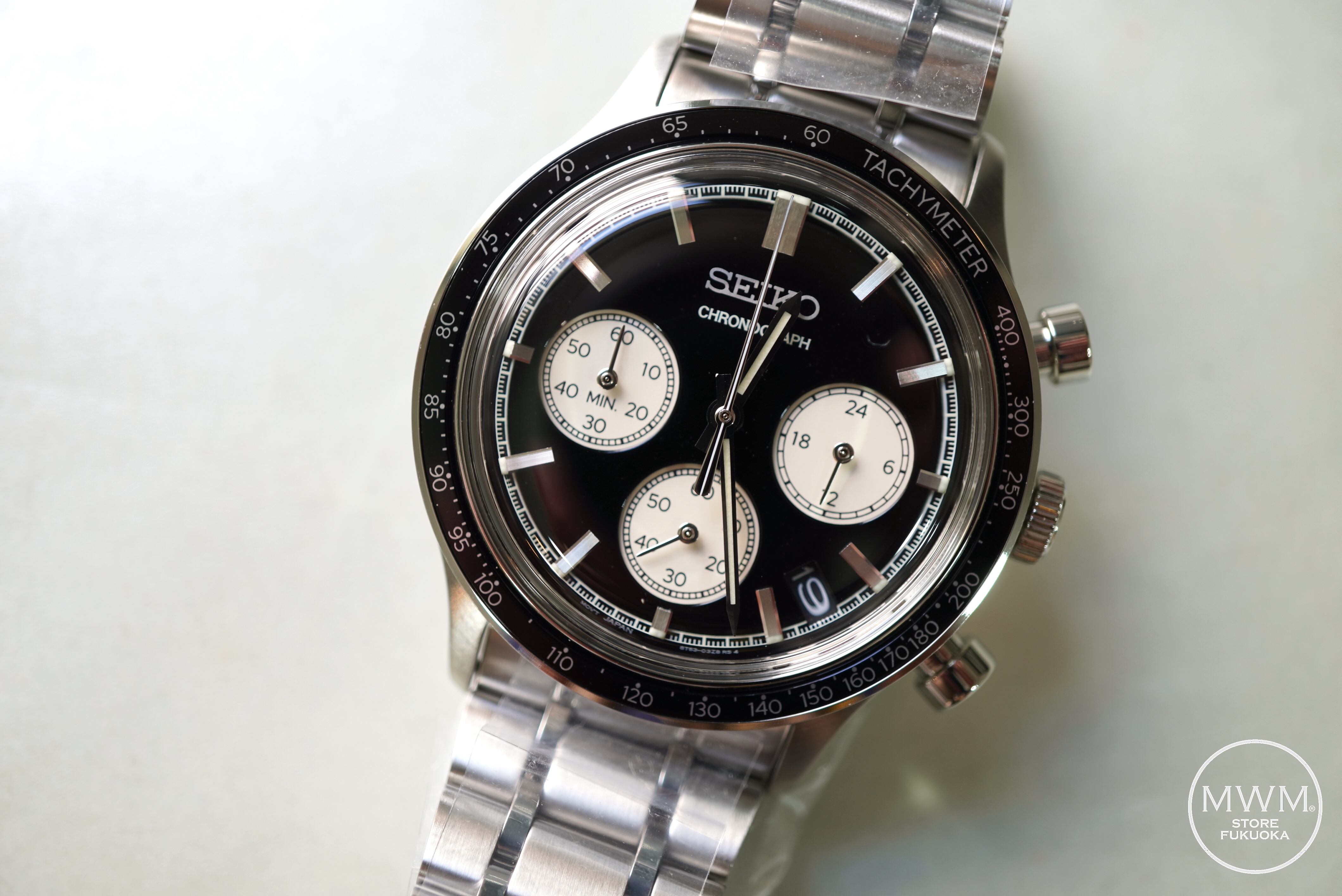 昨今トレンドになっているクラシックな要素やデザインを取り入れた、約39㎜の小径クオーツクロノグラフモデル。