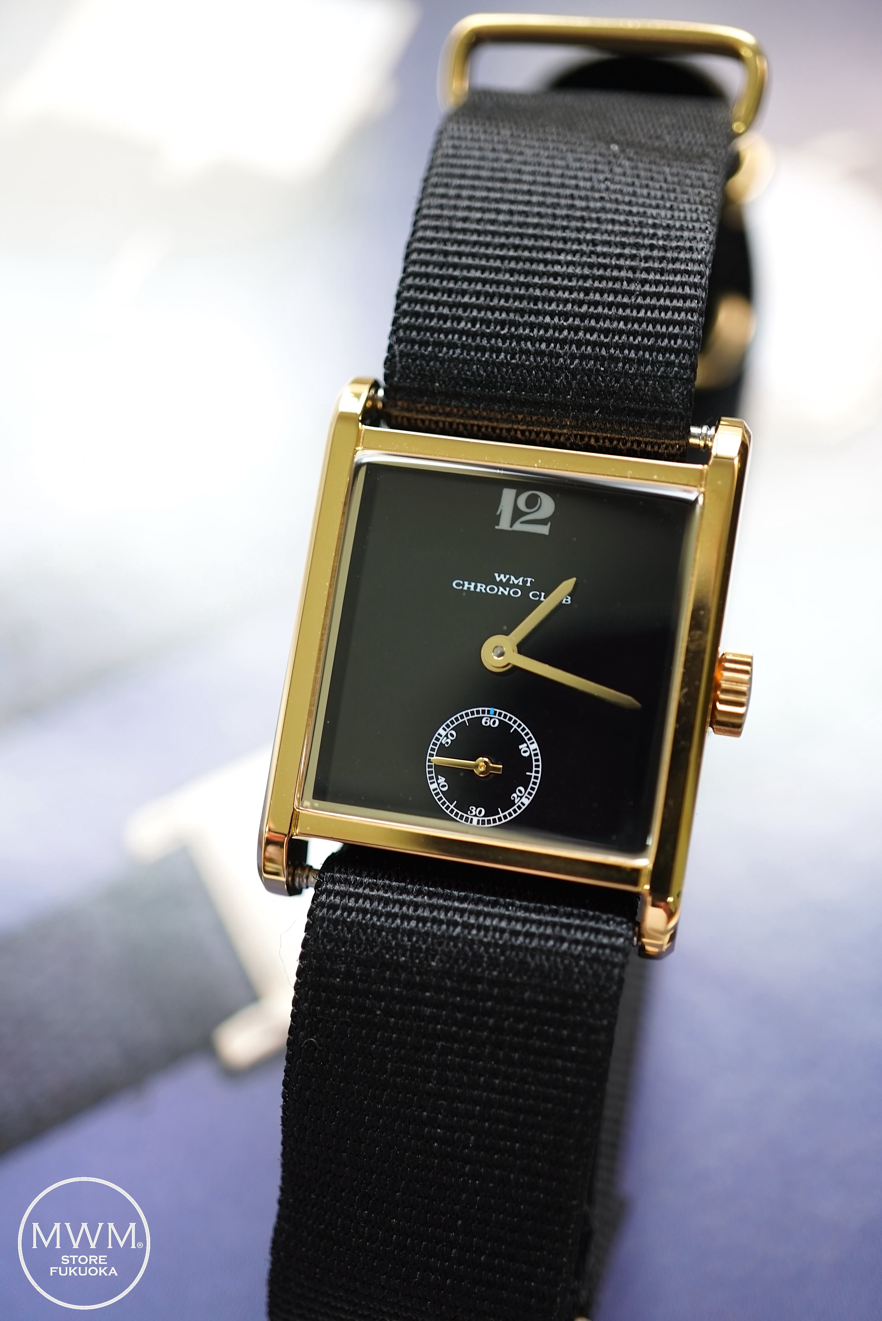 クラシックなスクエアケース、レトロなレイアウト、スモールセコンドのサブダイヤル、