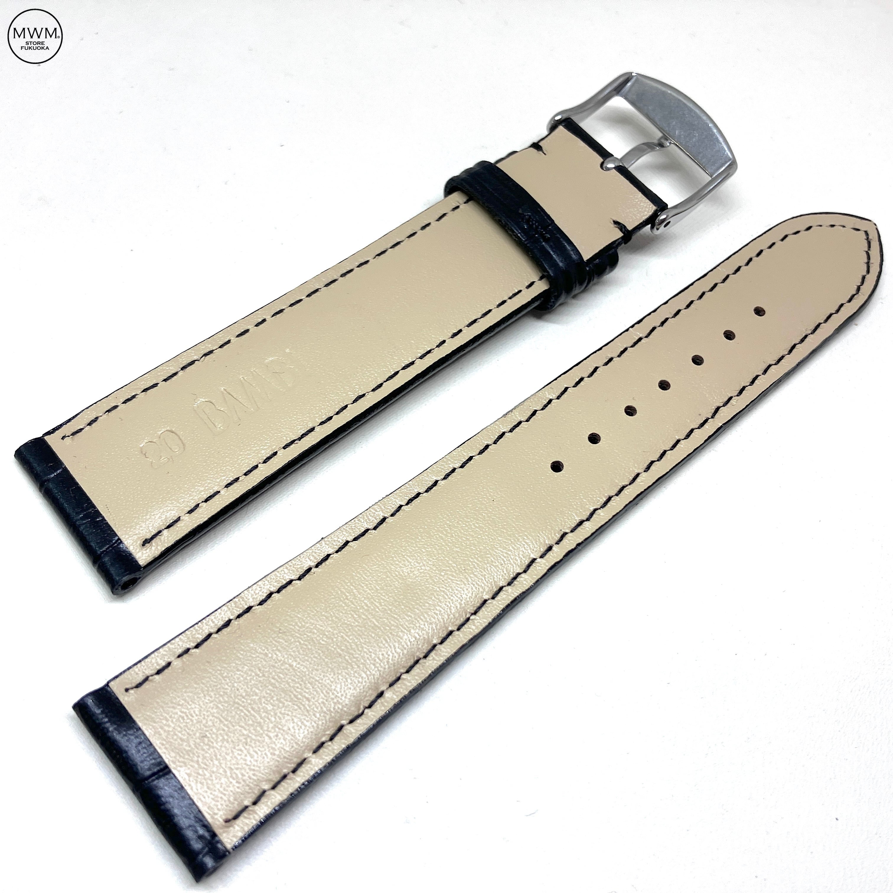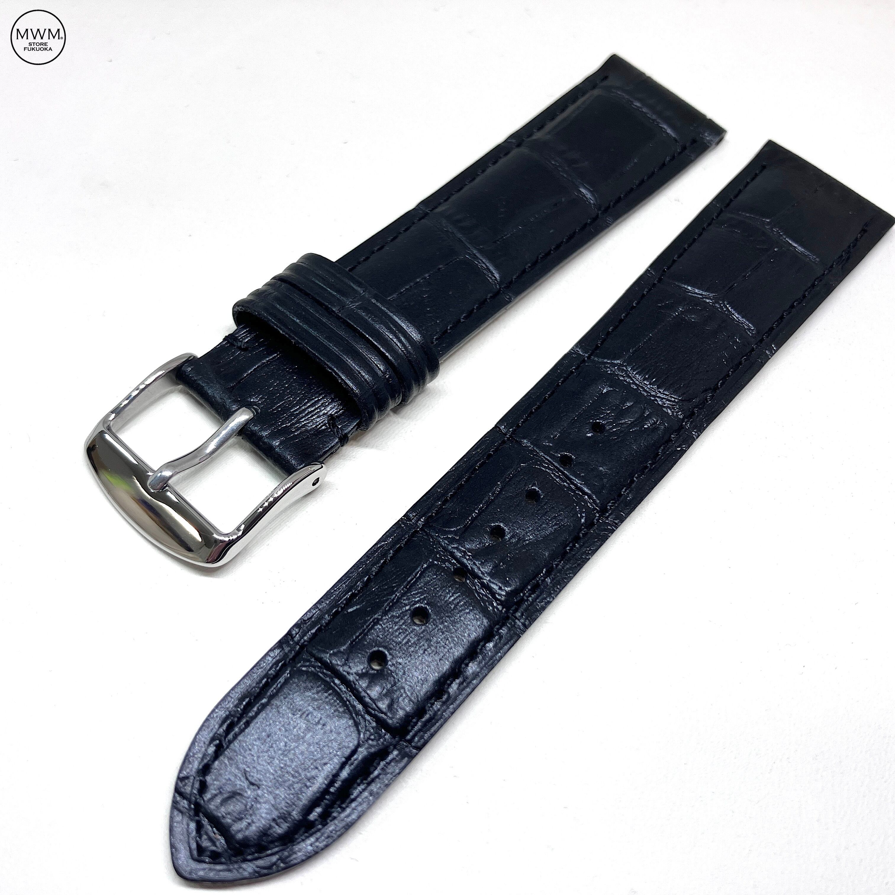 BAMBI 本革 クロコダイル型押し ブラック シルバー/ゴールド 20mm 腕時計ベルト