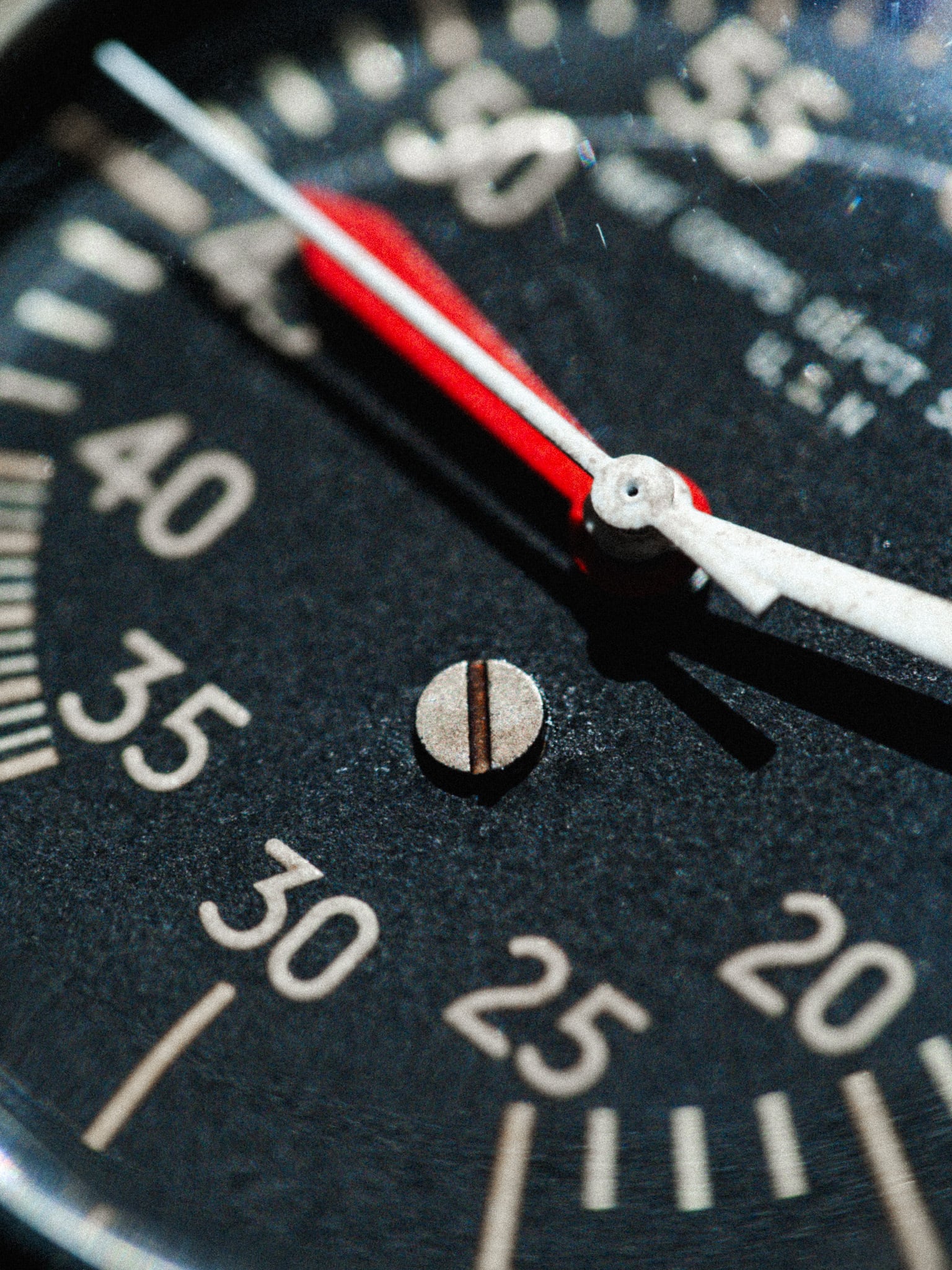 さらに、軍用計器の設計原則に基づいた 赤い時針 を組み込み、視認性と判読性を高め、