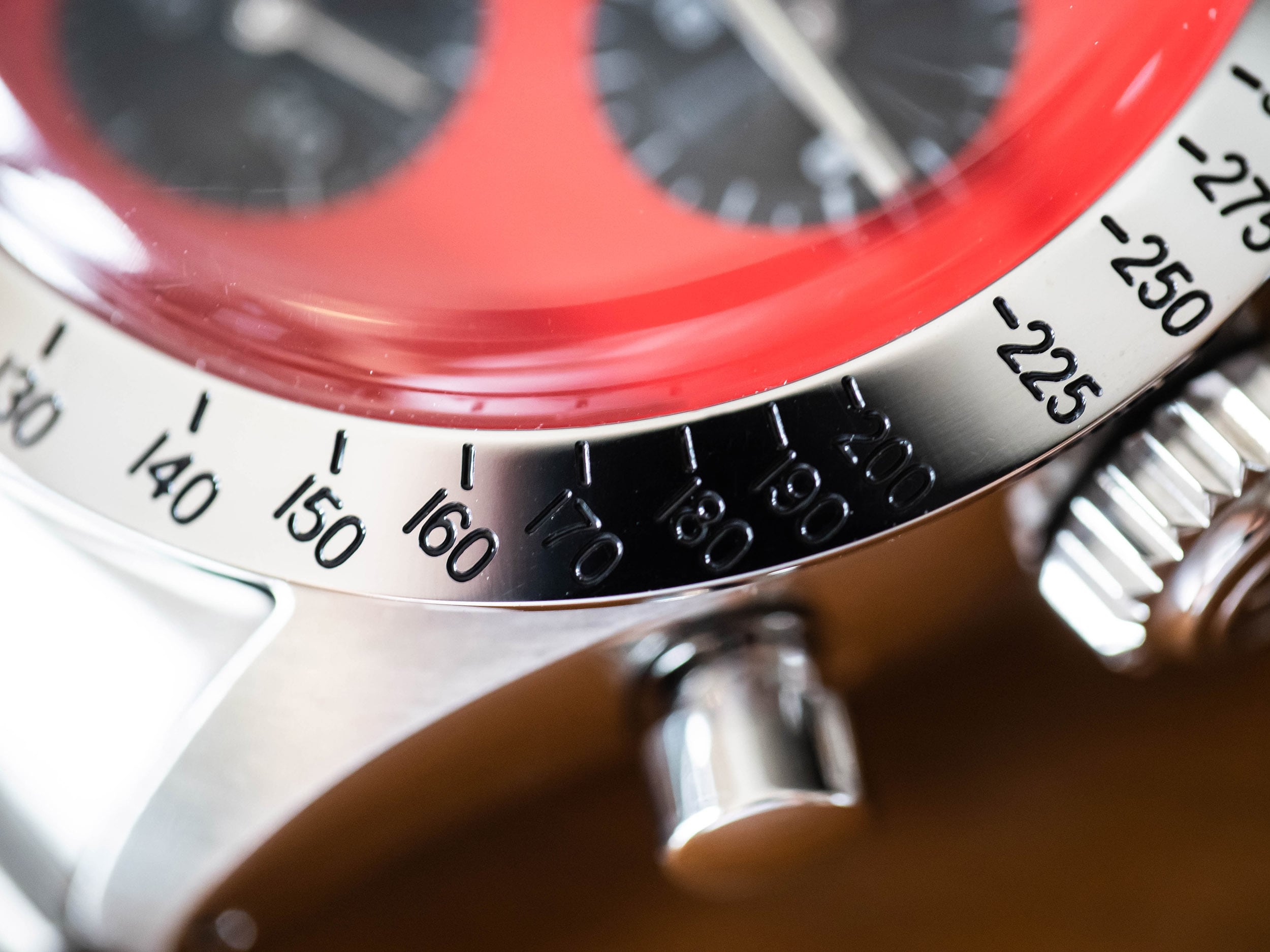 SSベゼルにはタキメーターが施され、絶妙なサイジングの37mmケース