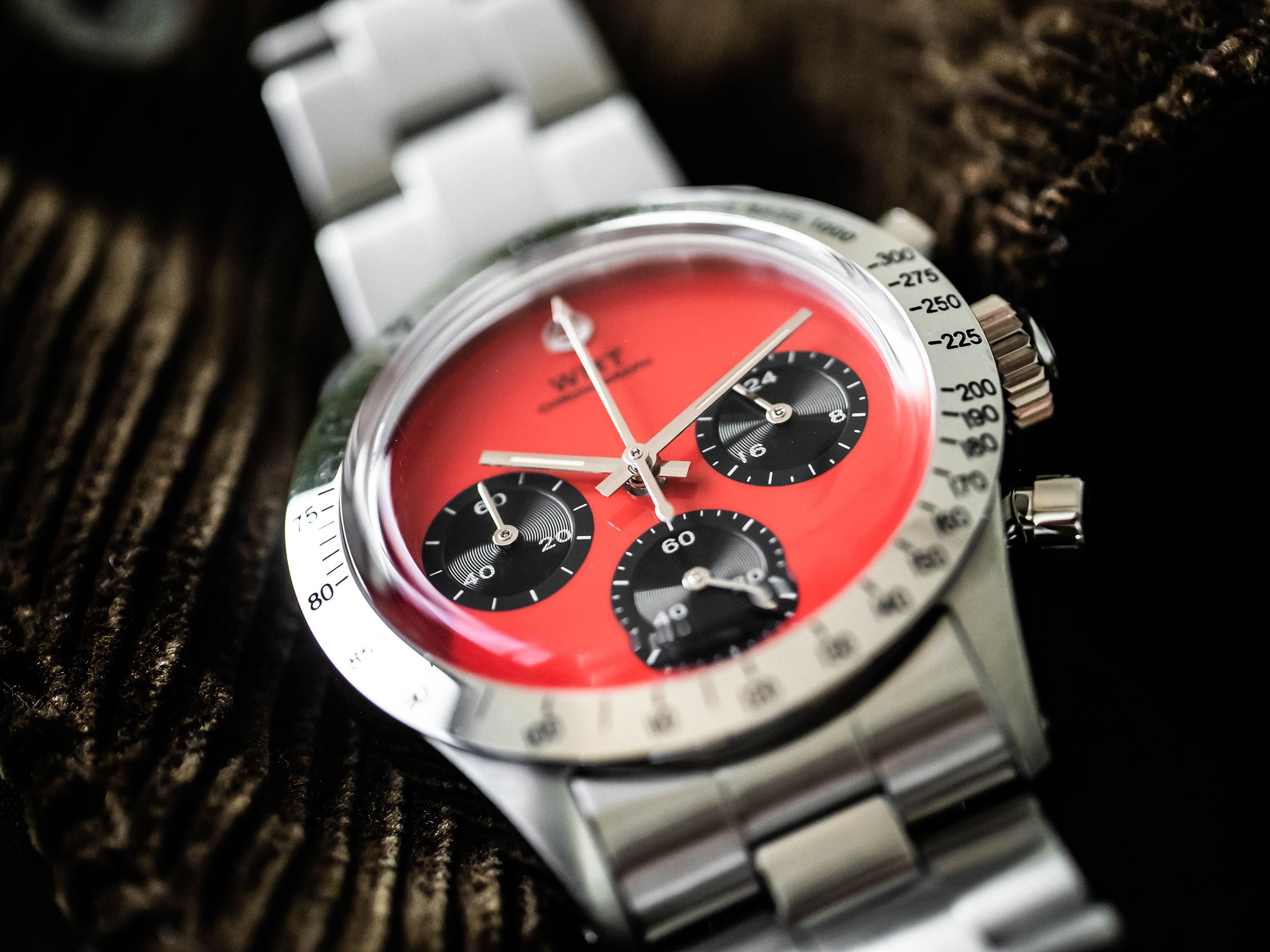 WMTの新たなクォーツクロノグラフGP1から、レッドダイアルの登場です