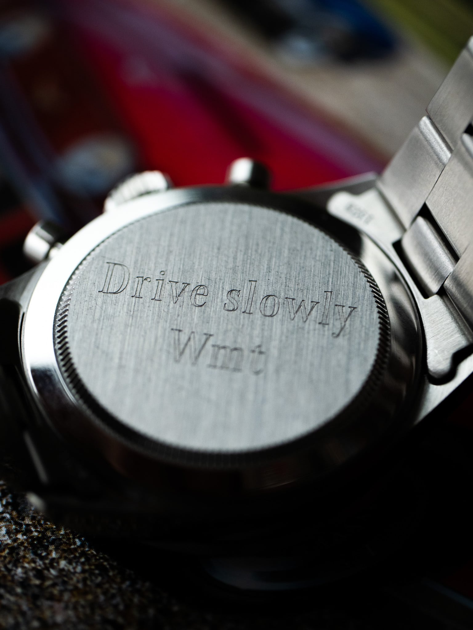 37mmケースにはヴィンテージテイストのベゼルを組み合わせ、コンパクトでバランスの取れたプロポーションを実現。ダイアルには伝説的な「Big Red」に着想を得たレッドマーキングを配し、ケースバックには「DRIVE slowly」の刻印を施すなど、モータースポーツの歴史へのオマージュが随所に表現されています。
