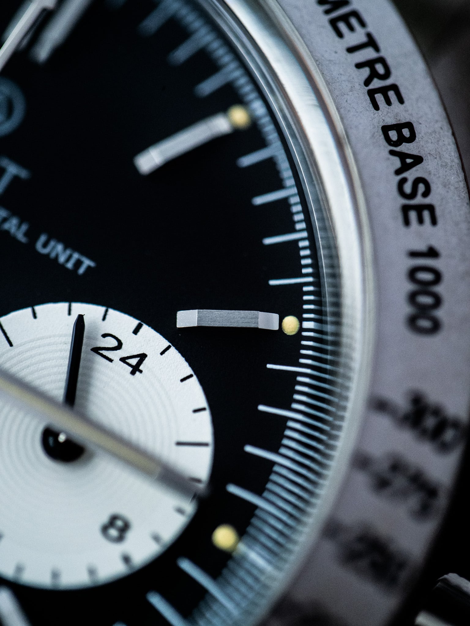 GP1 Black Dial は、モータースポーツ黄金期のクロノグラフデザインを現代的に再解釈したリミテッドエディションモデルです。ブラックダイアルにホワイトのサブダイアルを組み合わせた“リバースパンダ”レイアウトが、クラシックなレーシングウォッチの魅力を強く感じさせます。