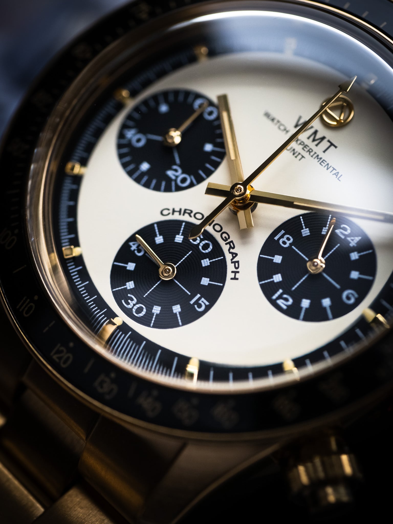 温かみのあるクリームダイアルに、力強いブラックのサブダイアルを組み合わせることで、視認性とデザイン性を高い次元で両立しています