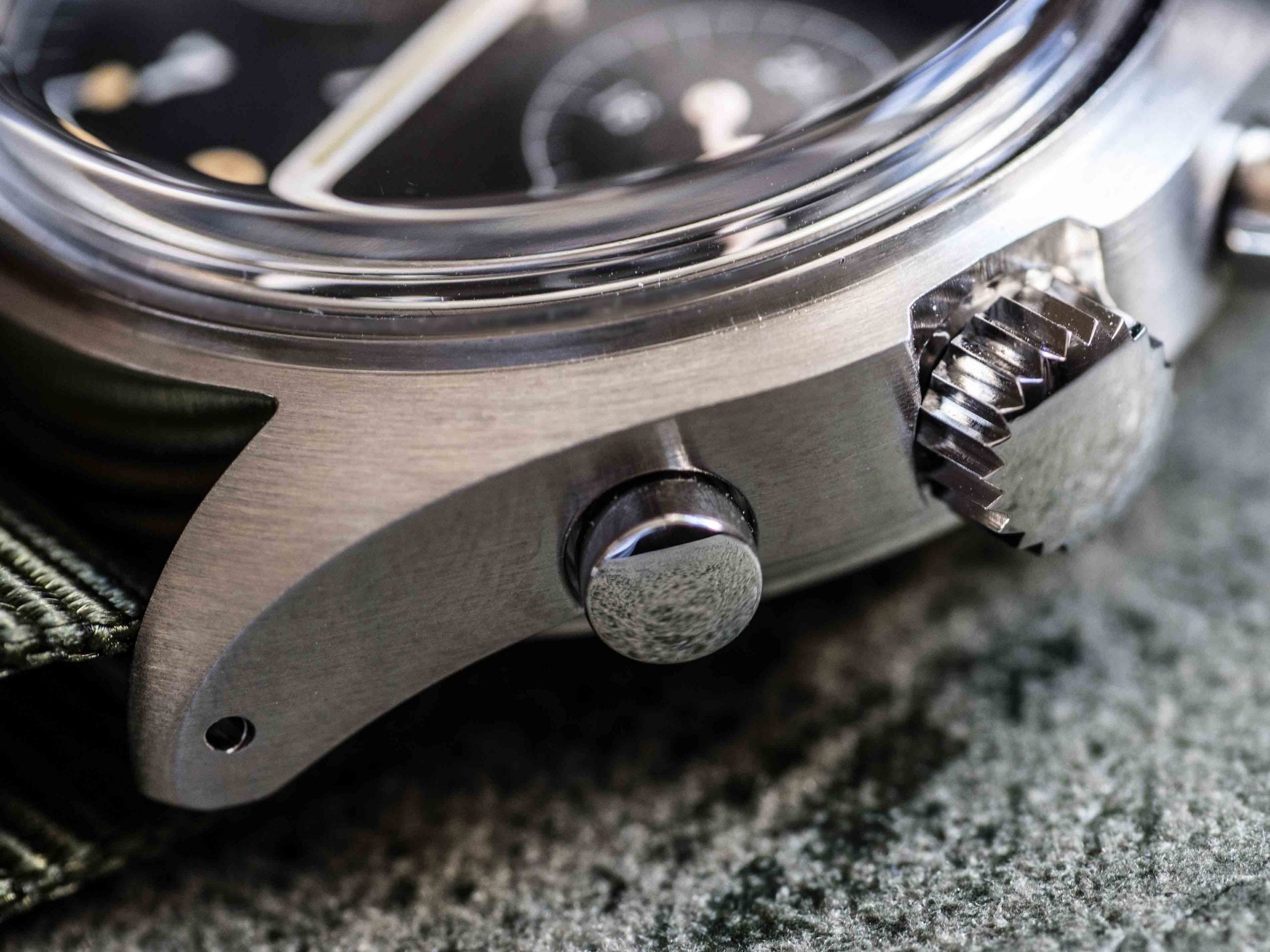 その名品のミリタリークロノグラフを再現にあたり、セイコーVK64ムーブメントを搭載し、