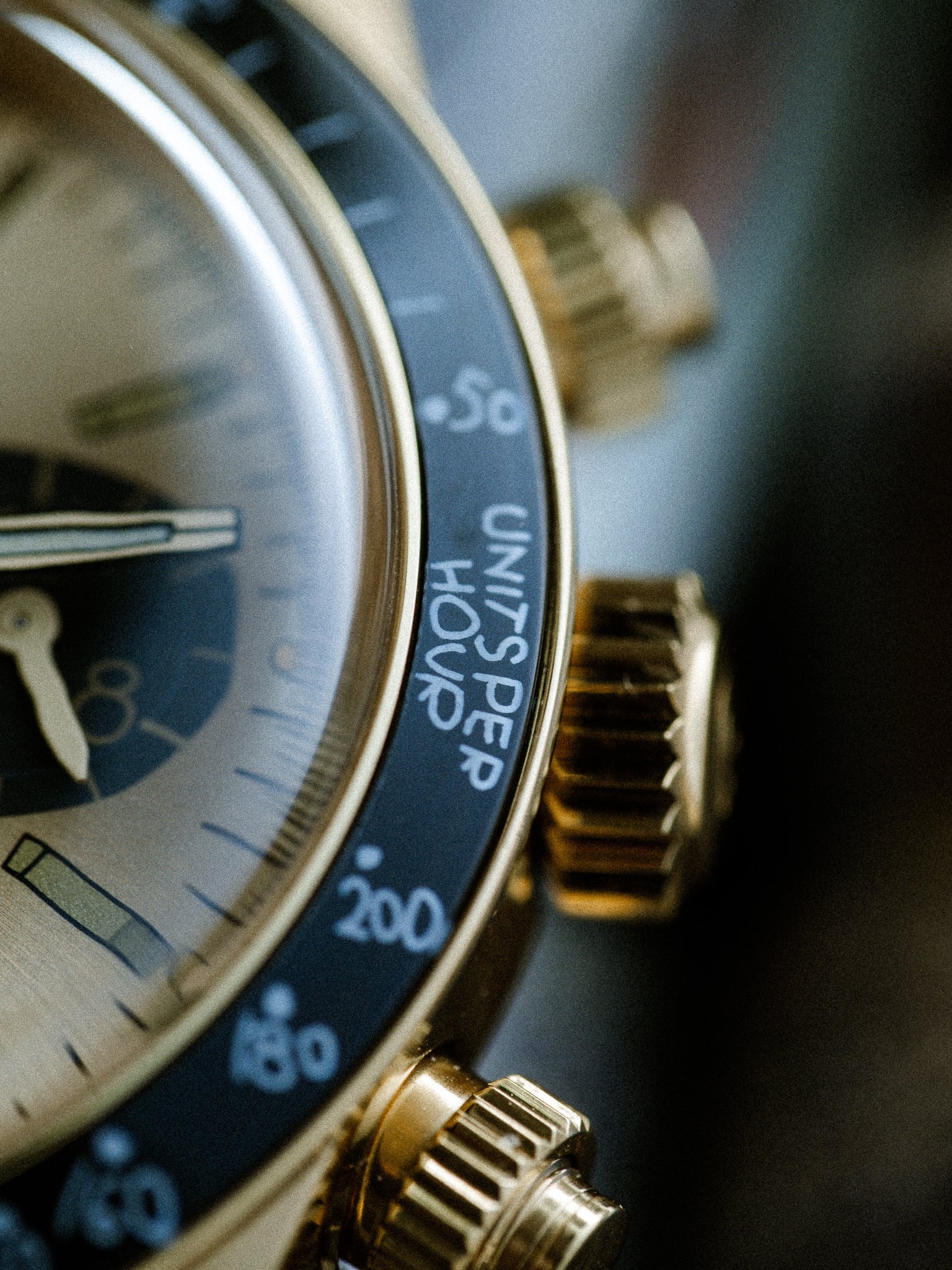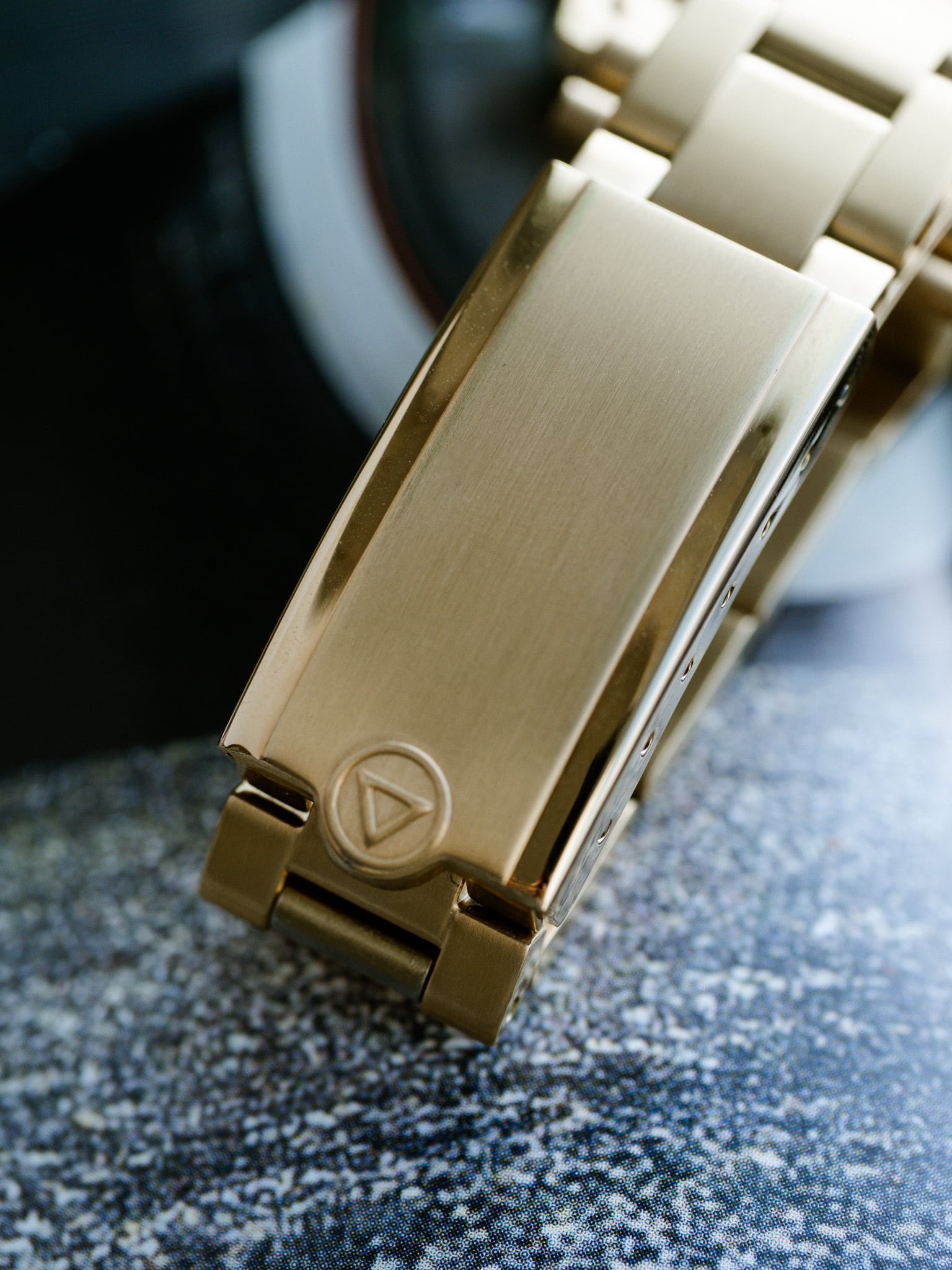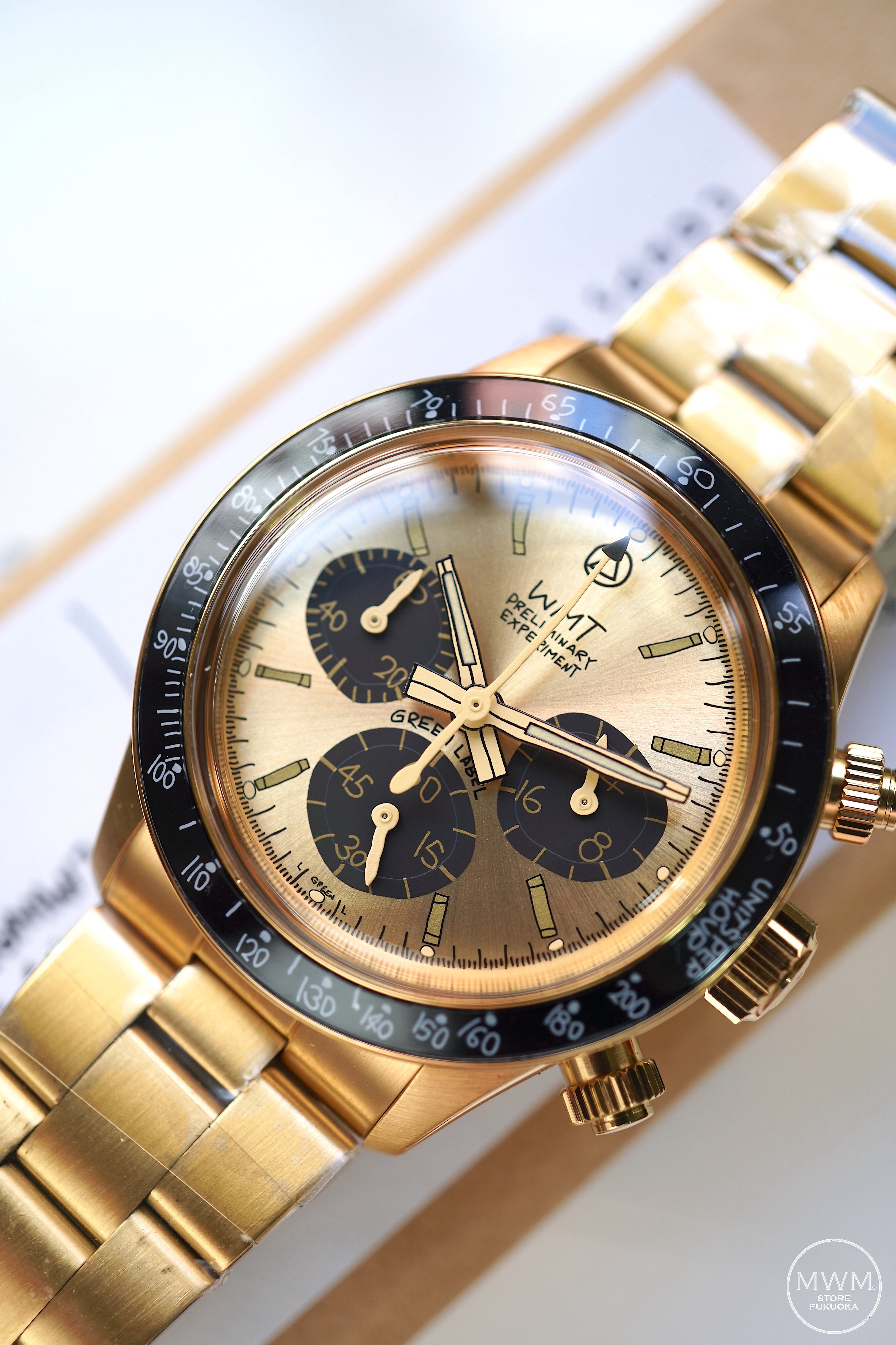 ゴールドとブラックのコンビネーションが印象的で、まるでコレクターズ・アイテムのようです。新しいバージョンは、ゴールドダイアルにブラックのインダイヤルのコンボ。